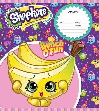 Зошит шкільний 18 арк. у клітинку ТМ "Shopkins" (Арт. 119752, 119753, 119754,119755)